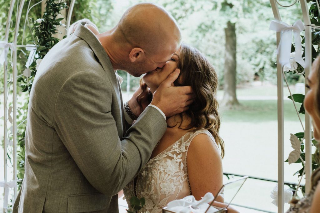 Die freie und sehr persönliche Trauung der Beiden fand im Schlossgarten in Münster statt. Im wunderschönen Pavillon gestalteten die Mütter der Beiden die Trauung selbst und sorgten damit für eine einzigartige familiäre Atmosphäre.