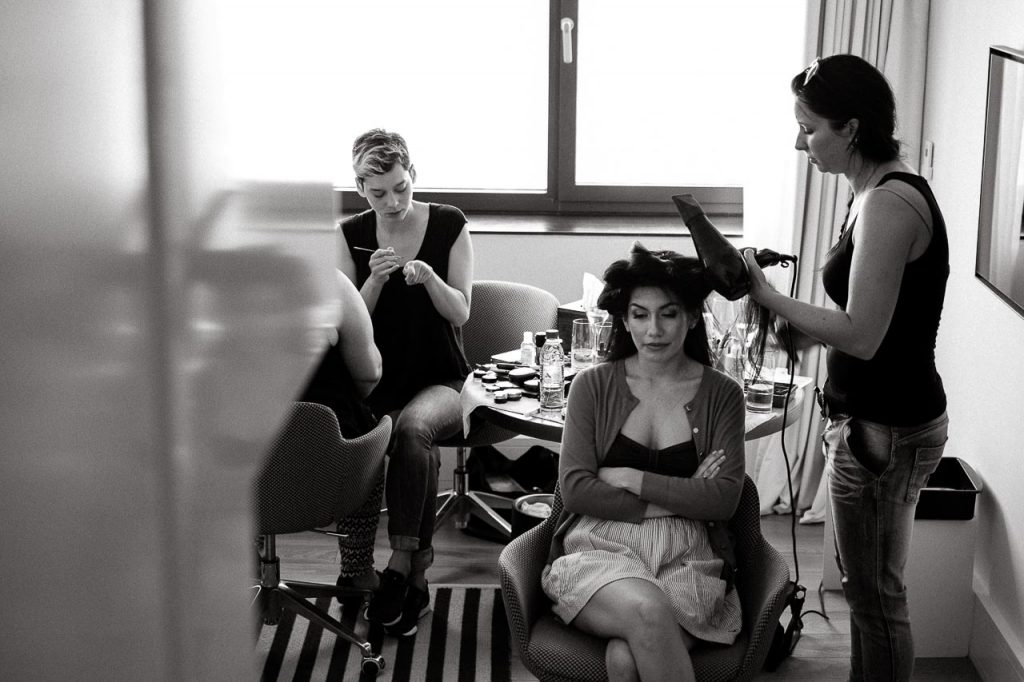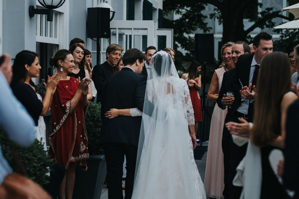 Die Geschichte von Louisas und Andrés Hochzeit durfte ich mitten in Frankfurt aufnehmen. Ein kleines Highlight war schon der Start des Tages: das Getting Ready, welches in einem Hotelzimmer mit einzigartiger Aussicht über Frankfurt stattfand. Louisa ist als Braut nicht nur wunderschön, sondern auch herrlich entspannt. Deshalb hatten wir schon vor den Feierlichkeiten ein paar wirklich lustige Stunden mit jeder Menge schönen Bildern.