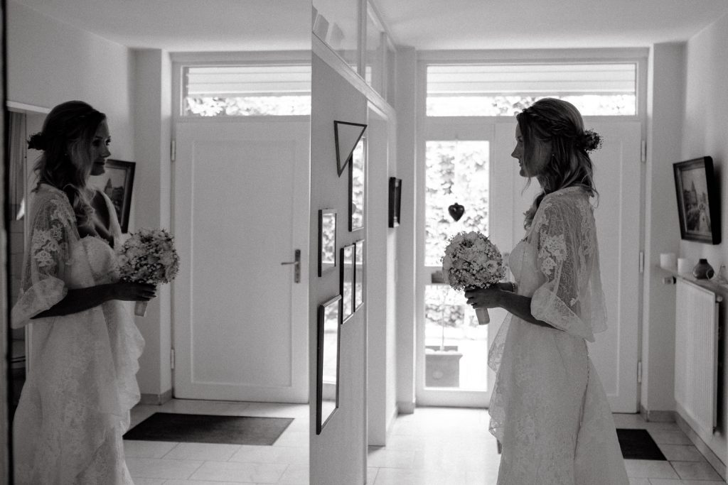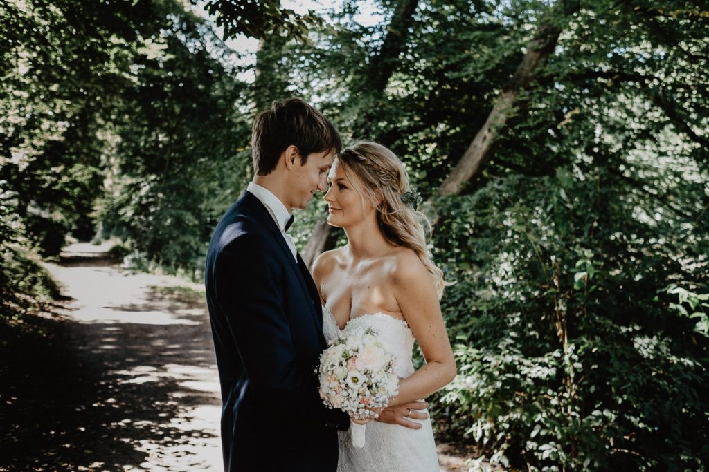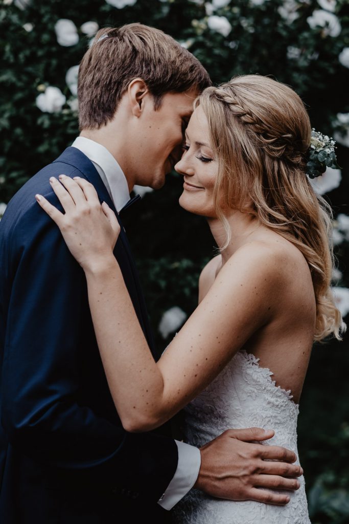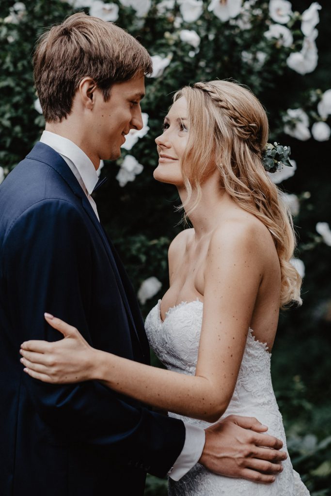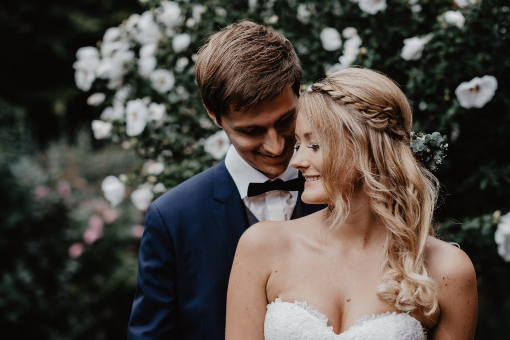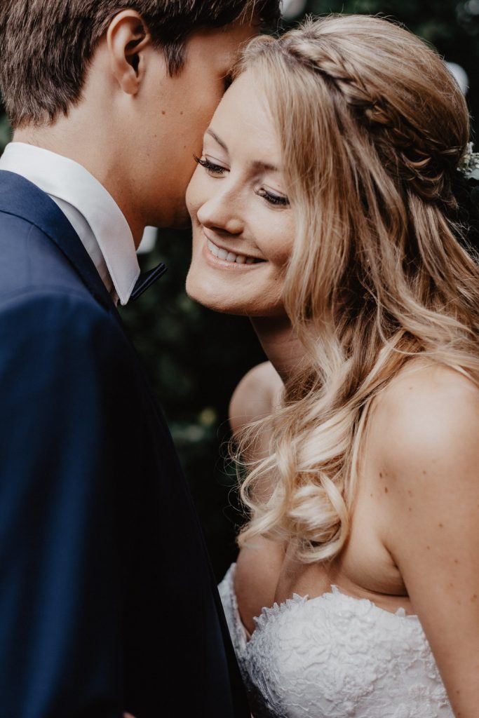 Im süßen Garten der Eltern stand am Tag der Hochzeit zunächst ein First Look Shooting auf dem Plan. Ich durfte den spannenden Moment festhalten,  als Thomas seine Steffi zum ersten Mal in ihrem Kleid gesehen hat. Und er war einfach nur begeistert, schließlich sah Steffi als Braut einfach wunderschön aus. Durch die intime Atmosphäre sind ganz besondere Paarbilder entstanden.