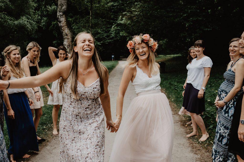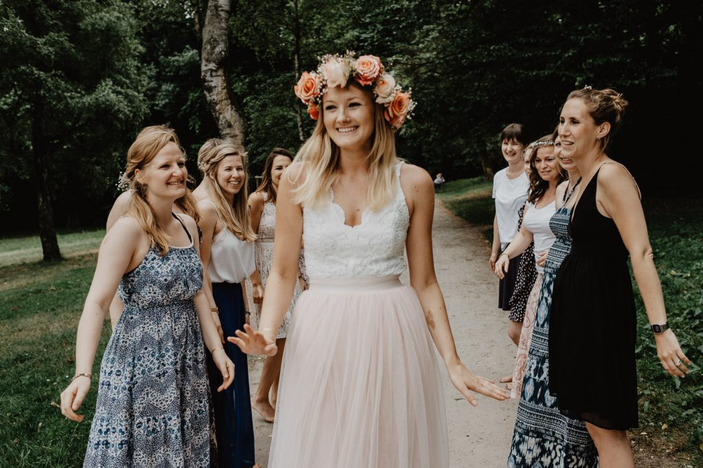 Wenn ich an die Hochzeit von Thomas und Steffi in Münster zurückdenke, habe ich immer noch ein wohlig warmes Gefühl. Die Beiden strahlen einfach Herzlichkeit aus und genau so sind sie auch: Herzlich und liebevoll. Mit dieser liebevollen Herzlichkeit wurde die Hochzeit vorbereitet und auch gefeiert. Ich durfte die Beiden nicht nur bei der Hochzeit begleiten, sondern auch Steffi’s Junggesellinnenabschied. Ihre Mädels haben mich für den JGA heimlich gebucht und mit den Fotos von diesem tollen JGA  wurde Steffi dann sogar an ihrem Hochzeitstag überrascht.