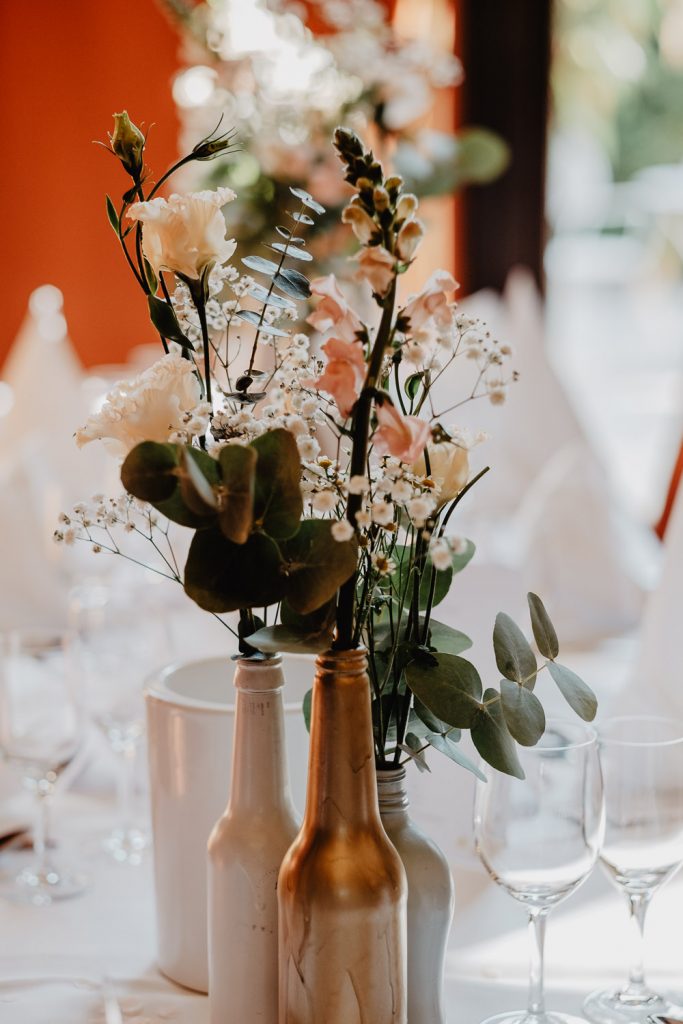 Im Anschluss wurde im Schloßgarten Cafè gefeiert. Auch hier konnte man erkennen mit welchem Herzblut Steffi ihre Hochzeit vorbereitet hat. Die Deko hat sie einfach mal selbst gemacht.
